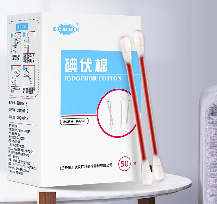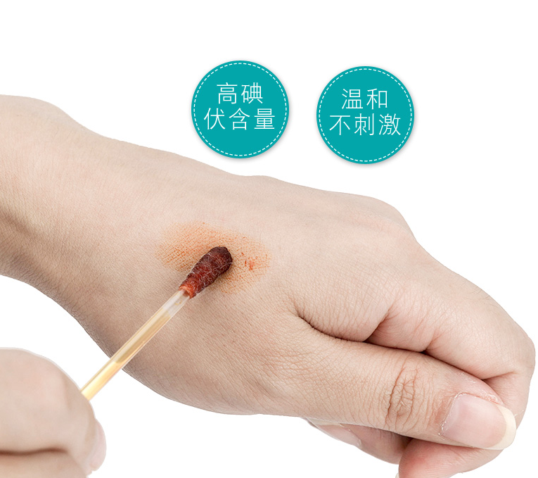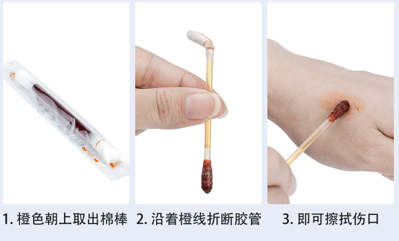 1、碘伏消毒棉簽的用法很簡單,先用一只手將棉棒彩環端沿膠膜向上頂出。